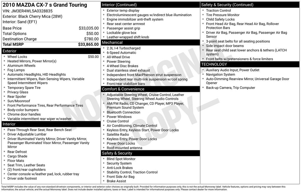 Black Cherry Mica 2010 Mazda CX-7 s Grand Touring 4D Sport Utility AWD 6-Speed Automatic Sport 2.3L I4 DISI MZR 16V Turbocharged